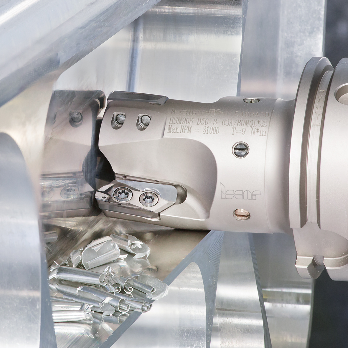 High-speed rotation generates centrifugal forces. In HSM, when compared with traditional machining methods, these forces grow exponentially and turn into a significant load on a cutting tool which determines the tool’s durability. In indexable milling, high centrifugal forces may cause insert clamping screws to break, inserts to loosen and a cutter body to fail. Formed fragments can not only damage a machine and a machined part but can be very dangerous to the operator.